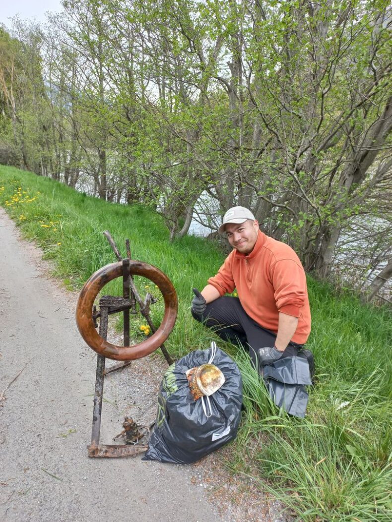 Gut gelaunt trafen sich Grüne und Fliegenfischer:innen am Samstag, 22. April auf dem Bahnhof in Turtmann. Der zweite Clean&Grill-Tag stand auf dem Programm. Ausgerüstet mit Abfallsäcken, Handschuhen und teils wasserfester Kleidung machten wir uns auf die Suche nach Abfall am südlichen und nördlichen Rhoneufer zwischen Gampfel und Susten. Lange mussten wir nicht suchen, bis wir fündig wurden. Alles mögliche fanden wir halb vergraben im Sand, eingeklemmt zwischen Steinen und Ästen oder frei rumliegend.