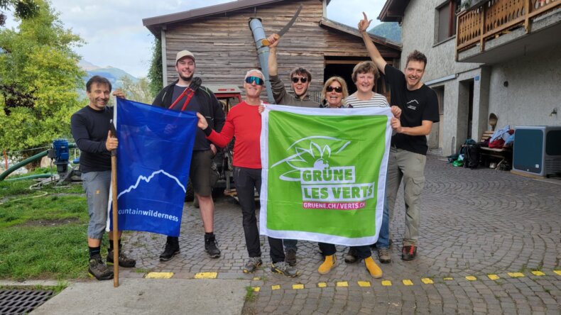 Um ein Zeichen zu setzten und die Dringlichkeit dieser Thematik zu unterstreichen, haben die Grünen Oberwallis gemeinsam mit Mountain Wilderness kürzlich eine Rückbauaktion organisiert auf dem Biohof Schmeli in Brig. Dabei wurden mehrere hunderte Kilo alte Zäune weggeräumt.
